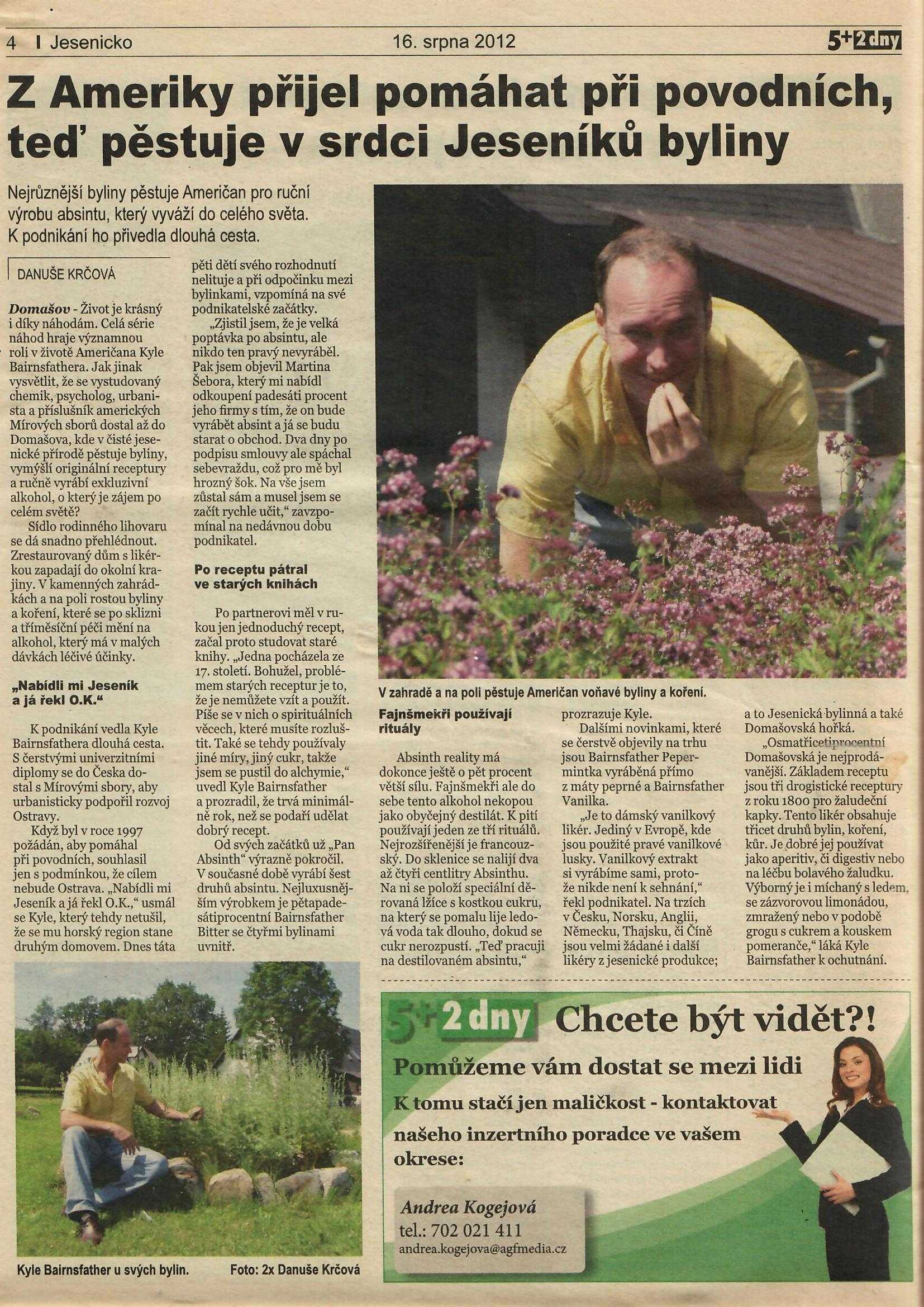5+2 16.8.2012 08.04.2022 | Napsali o násZ Ameriky přijel pomáhat při povodních, teď pěstuje v srdci Jeseníků byliny