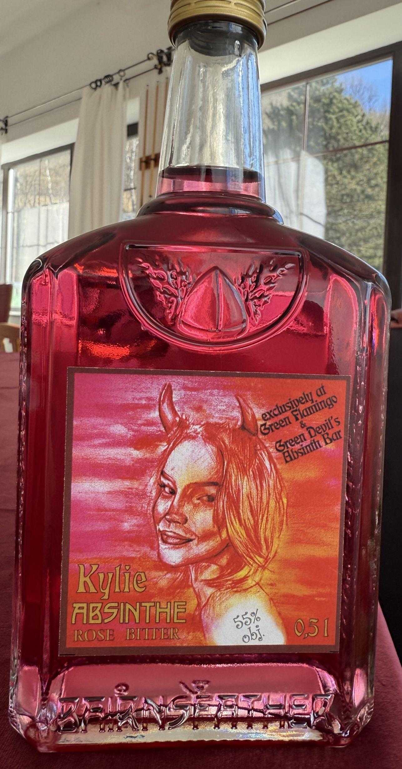 Novika 2025. Kylie Rose Absinthe Bitter a Anais Rose Absinthe Bitter 55%A very special handmade absinthe using Kyle Absinthe as the base: a distillate using just 4 herbs: our own wormwood, fennel, coriander and anise. This distillate is then macerated with various fruits to achieve a complex fruity flavour and aroma with a 100% natural red colour. This untraditional step uses fruits instead of herbs for the second maceration creating a unique taste experience. Produced on demand in small batches guarantees the freshness of the final product. To enhance the fruitfulness of the absinthe we recommend to use the classic Absinthe Service: Absinthe glass, absinthe spoon, sugar cube, and absinthe fountain with ice water, dripping the ice water of the sugar cube and into the glass. Not everybody loves the anise or "black liquorice" flavour, which is part of the flavour profile for historical absinthe. Why not use fruits instead of herbs for the second maceration, the so called "colouration phase"? This stage turns a "Blanche" (white) absinthe into a "Verte" (green) absinthe. Why not use fruits and turn the absinthe into a Róse wine colour and introduce a lovely fruit flavour to the flavour profile? Instead of Verte we name this version of absinthe Rose or Róse. We did this with the Kylie Rose Absinthe bitter which is available exclusively at the Green Flamingos and Green Devil's Absinthe bars in Prague Old Town. We can offer our own version under the Anais Rose Absinthe bitter label. | |